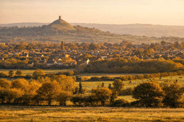 Five minutes by car.Glastonbury