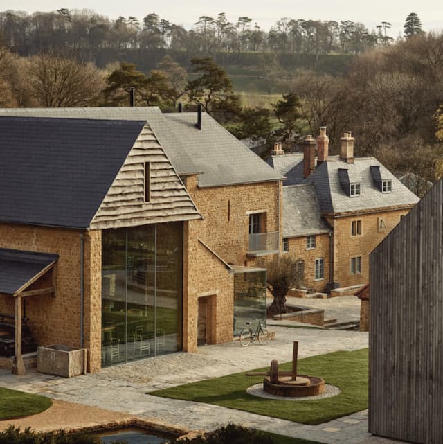 Just beyond the cyder orchards and Four Seasons Garden, half a mile from Hadspen as the crow flies, this former dairy farm is a place to spread out and lean back, cheek-to-rosy-cheek with grazing livestock and sheltering oaks. Original farm buildings, with a delightfully golden patina, are home to rooms, a pool, bar, snug and all-day kitchen. Complimentary drinks are available at the Garner Bar for hotel residents, while bikes and buggies provide ample opportunity for pootling over to the gardens, the spa at Hadspen with its treatment rooms and The Botanical Rooms restaurant in less than 10 minutes via the picturesque orchards.