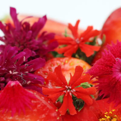 Dianthus – A small bloom with a big fragrance and pleasantly sweet and sour taste, try them with seafood, stir fries or fruit salads.