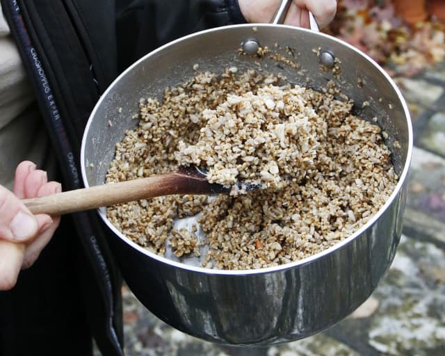 Gently break apart the mixture with a fork