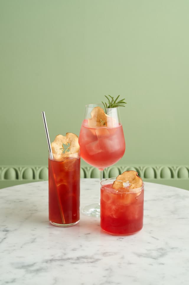 Choose a large wine or gin glass, fill with ice and chill. Combine gin, Apple Juice and cordial, stir gently, add the soda and serve with a slice of dehydrated apple and fresh rosemary.